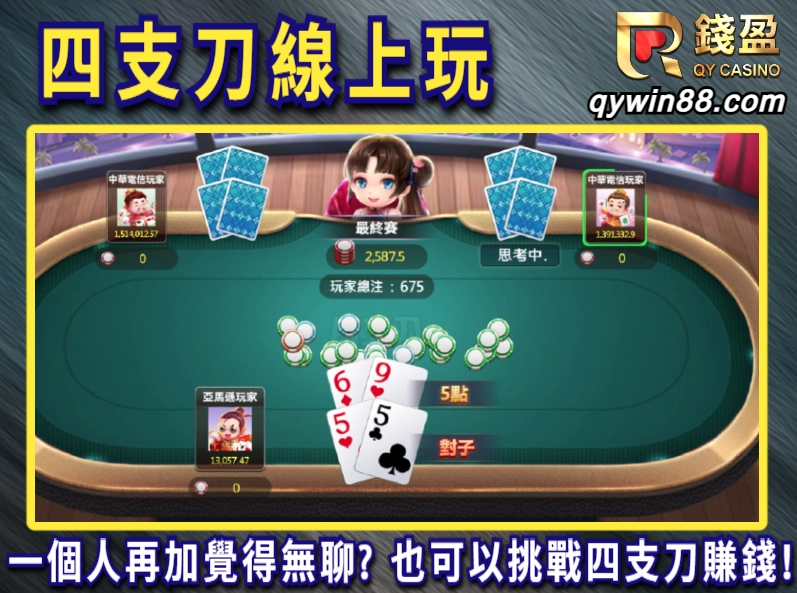 推薦大家可以加入錢盈娛樂城開啟你的四支刀線上玩之旅,錢盈娛樂城的高登棋牌就能直接挑戰四支刀遊戲,而且系統自動化幫你組合好牌型,讓你能夠更迅速地了解四支刀怎麼玩以及怎麼賺!就算平常一個人孤單寂寞覺得冷,朋友都在忙,你也只需要打開手機就能透過四支刀線上玩賺錢錢囉!新會員首儲1000送500、每日存款皆可領取簽到彩金、虛擬貨幣USDT儲值筆筆2%回饋,這麼多好康的平台哪裡找呢,趕快加入多賺零用錢吧~!