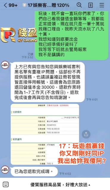 - 17娛樂城(詐騙娛樂城,玩家在娛樂城玩遊戲贏錢,不出金理由常常都是客服用重複IP對打並且直接鎖玩家帳號)